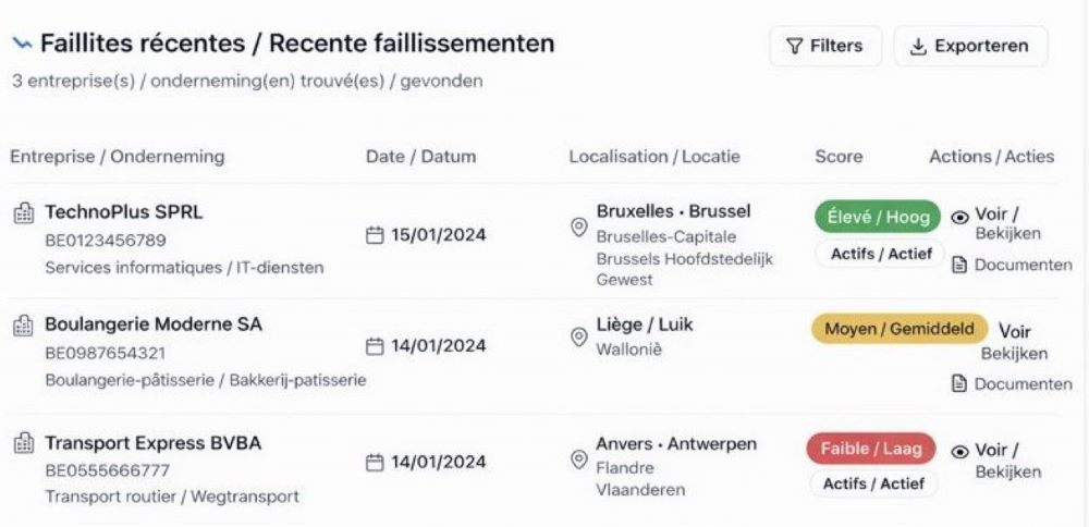 Annuaire faillites entreprises Belgique pour suivre les faillites en temps réel et détecter les opportunités de reprise.